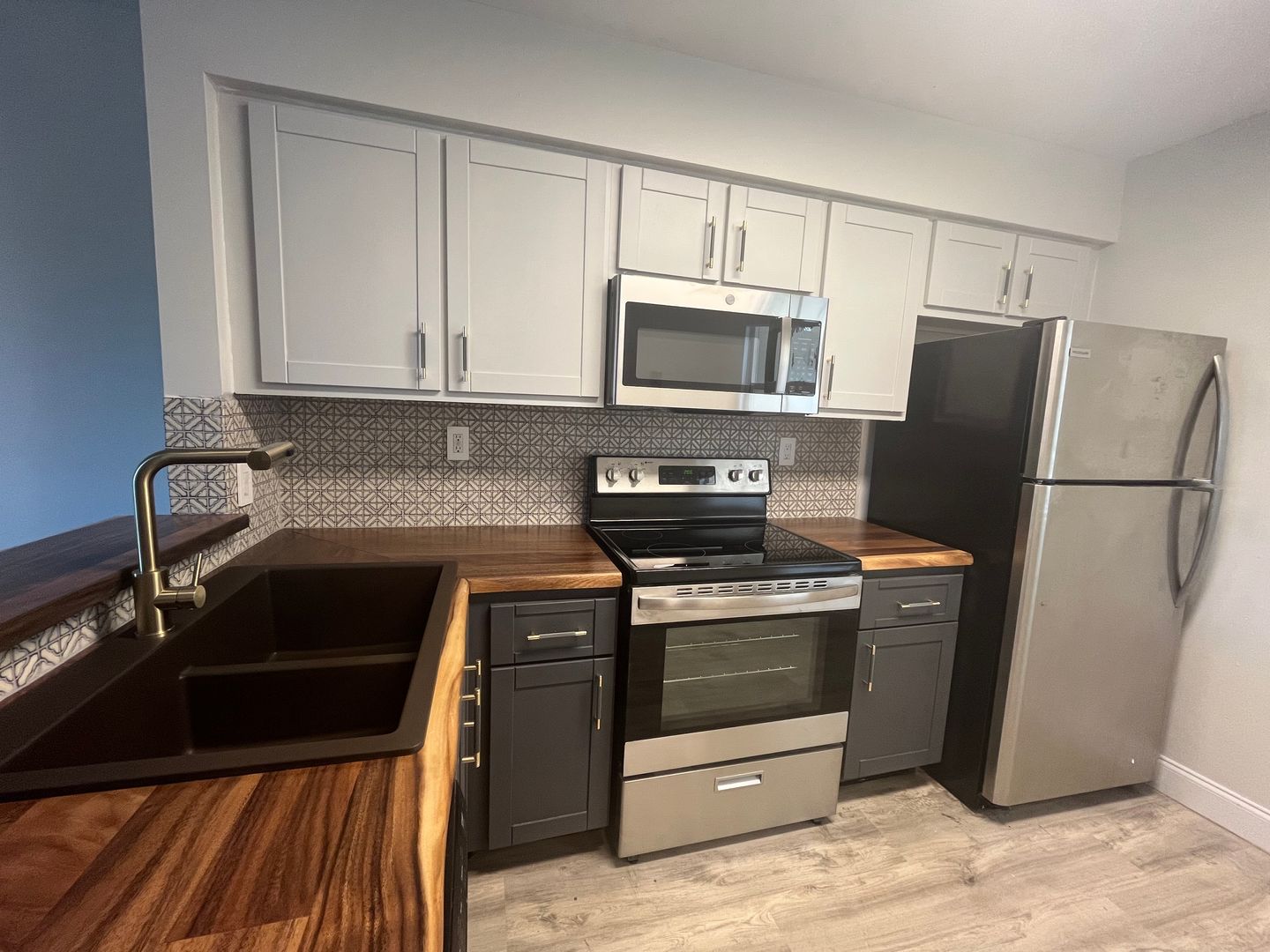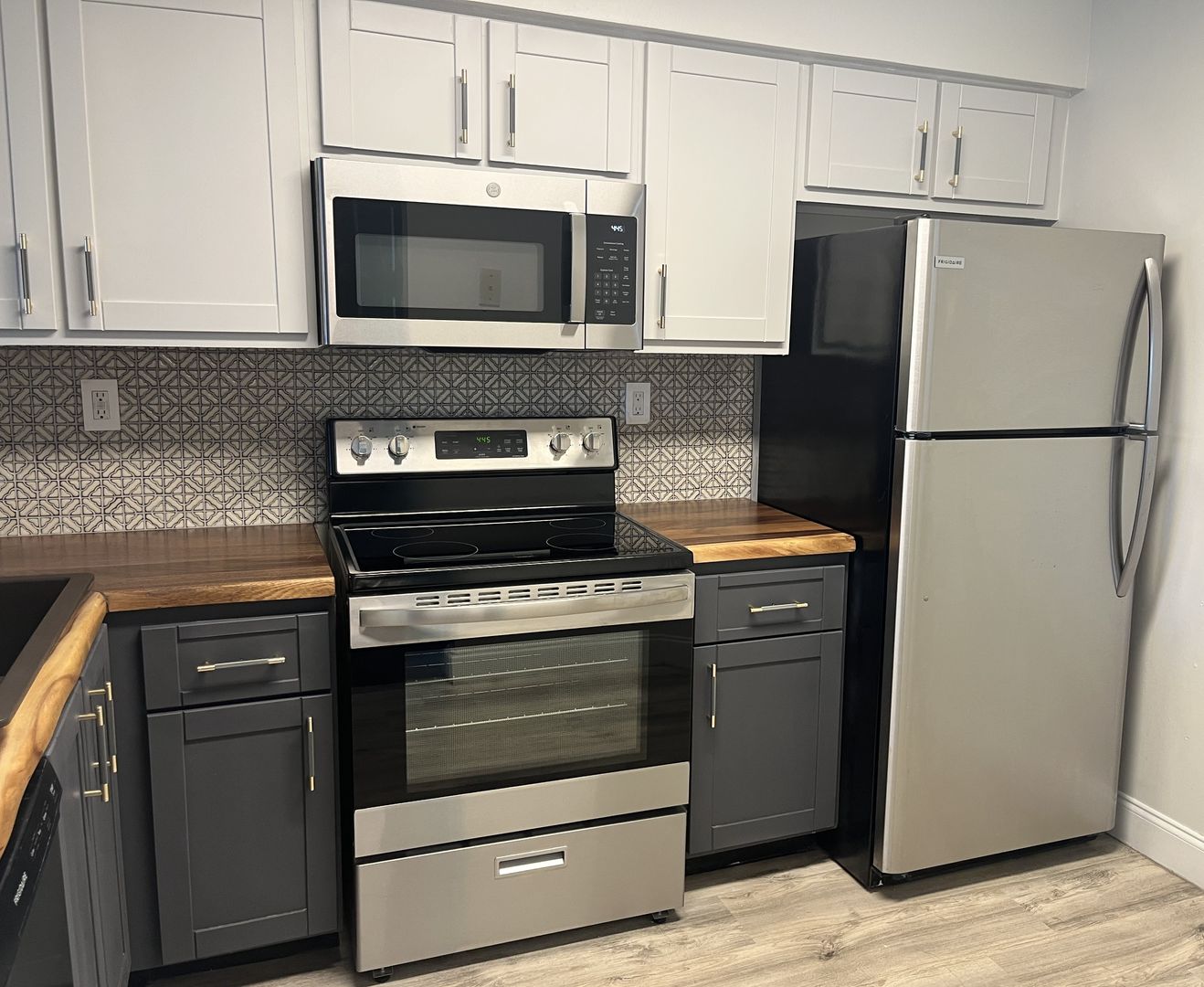 950 sq, ft. nicely distributed in a flat second floor unit. Comfortable and affordable.
